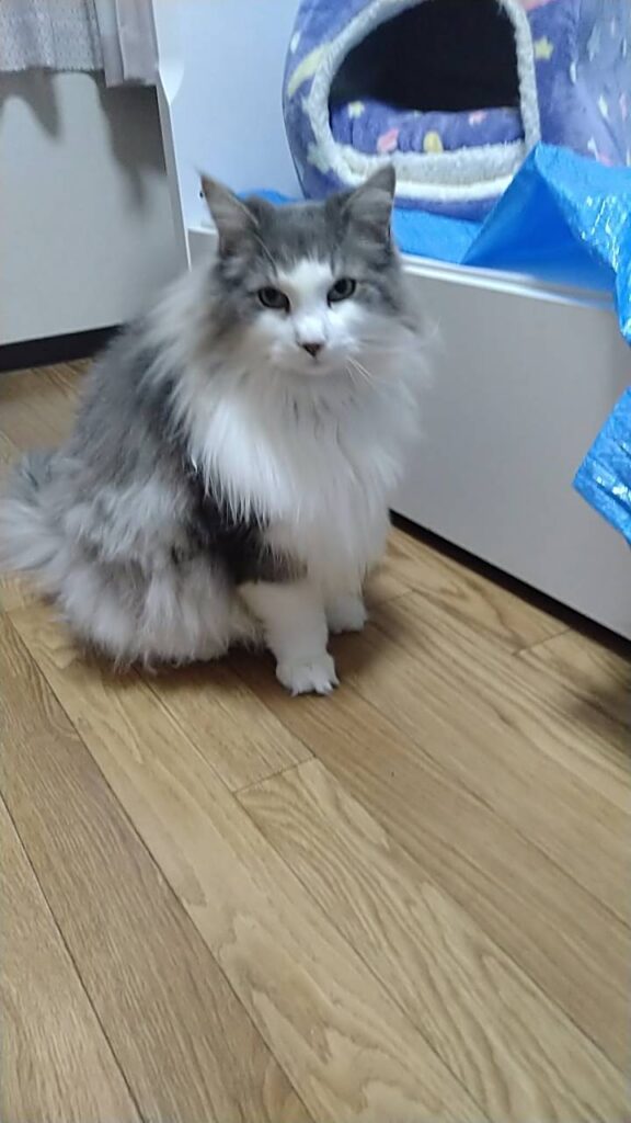 偶然ですが、前記事の猫ちゃん達も同じノルウェージャンフォレストキャットでしかも同日のお世話だったんです